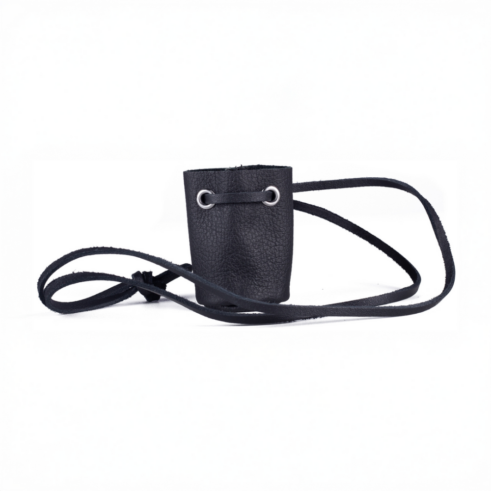 This leather pouch is ideal for your small bottle of leather cleaner. The leather cord allows you to place the pouch around your neck and keep the aroma always close at hand. Height 6.5 cm, diameter 4 cm. Genuine cowhide leather. Vegetable-tanned. Made in Europe.