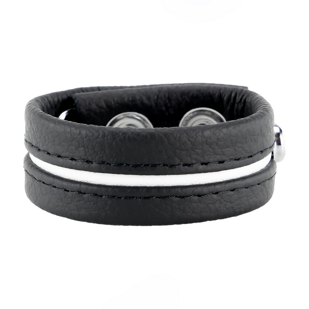 This leather cockring is an ideal sextoy for maintaining arousal and erection. It features a 22 mm width with 3 metal snaps. The clamping diameter is adjustable from 30 to 55 mm. Genuine cowhide leather. Vegetable-tanned. Made in Europe.