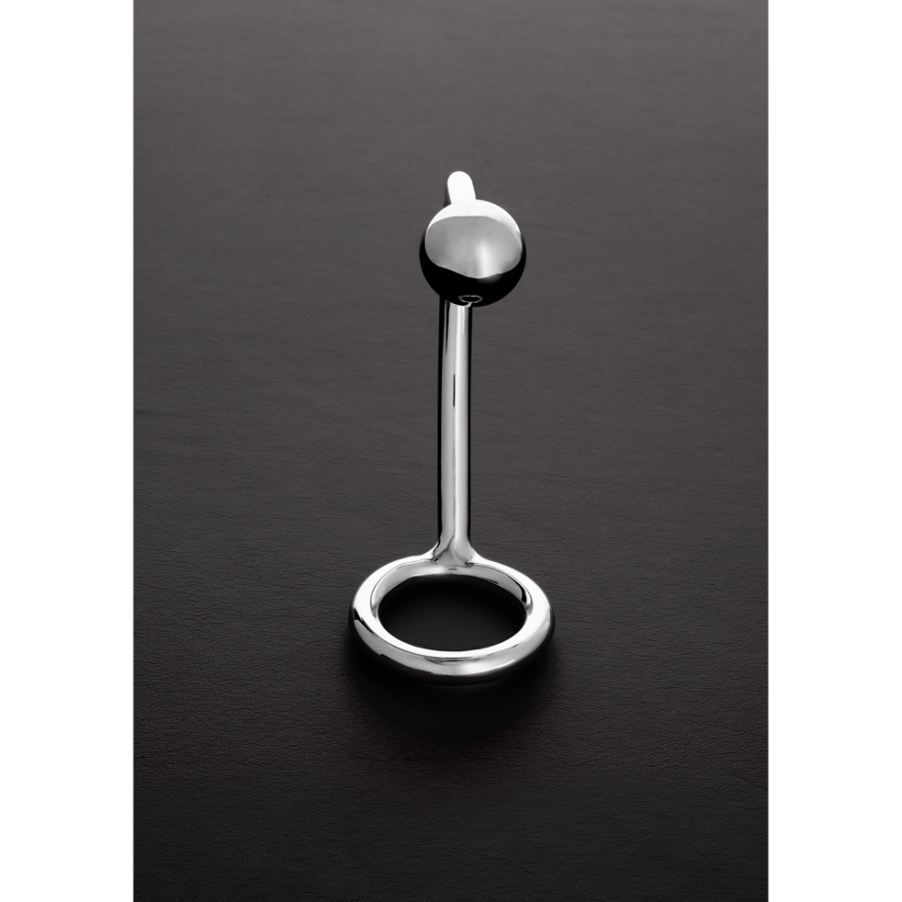 Anneau en acier inoxydable joliment poli avec boule anale. Cet anneau pénien avec une boule anale attachée assure que l'anneau restera bien et ferme à sa place. La boule peut être retirée pour faciliter le nettoyage.