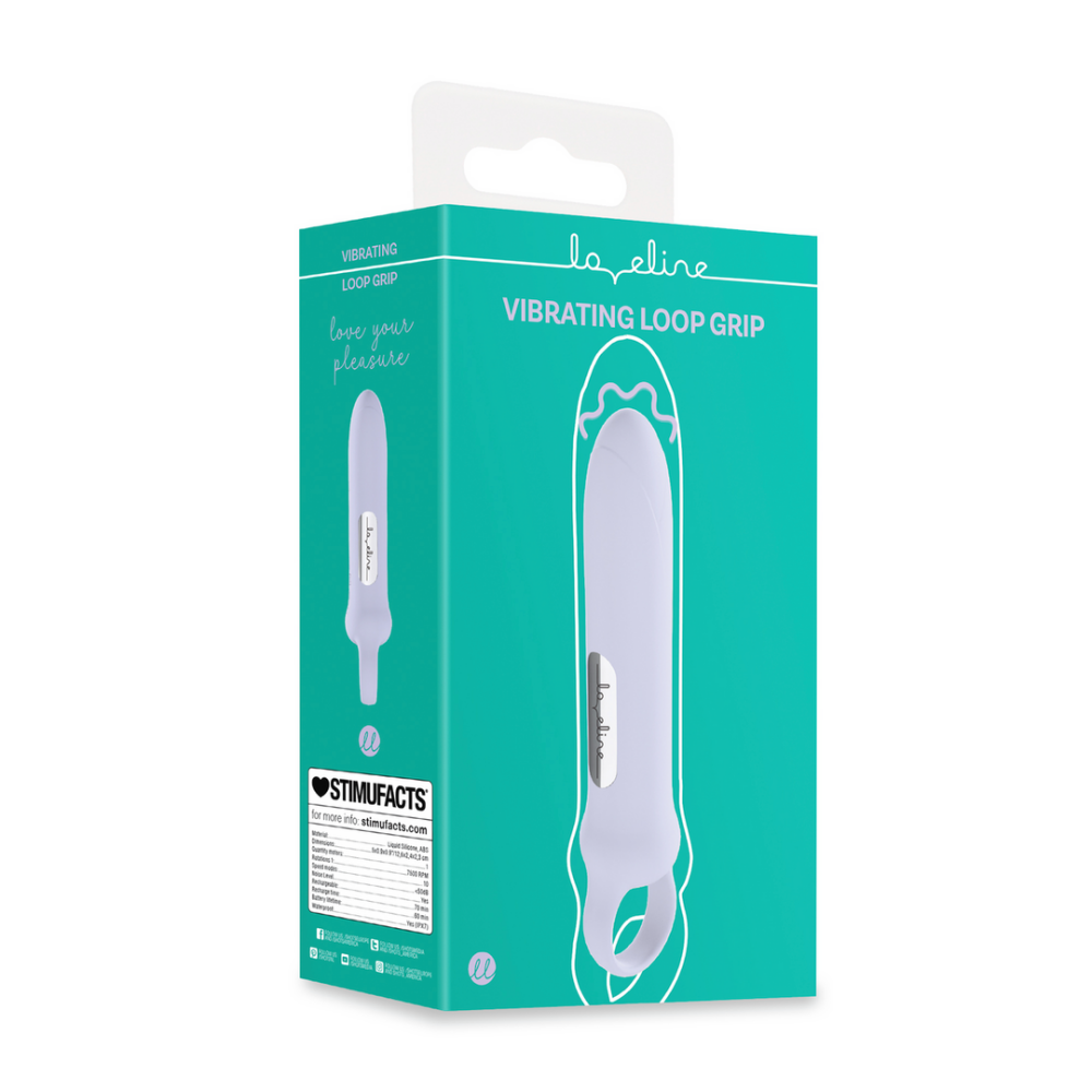 Introducing the Vibrating Loop Grip from Loveline. A compact and powerful yet gentle bullet massager with 10 vibrating functions. Designed with a smooth silicone loop for secure and comfortable grip. Thoughtfully crafted this massager supports your self-care journey with ease, comfort, and tranquility. The Vibrating Loop Grip comes with a 1-year warranty.