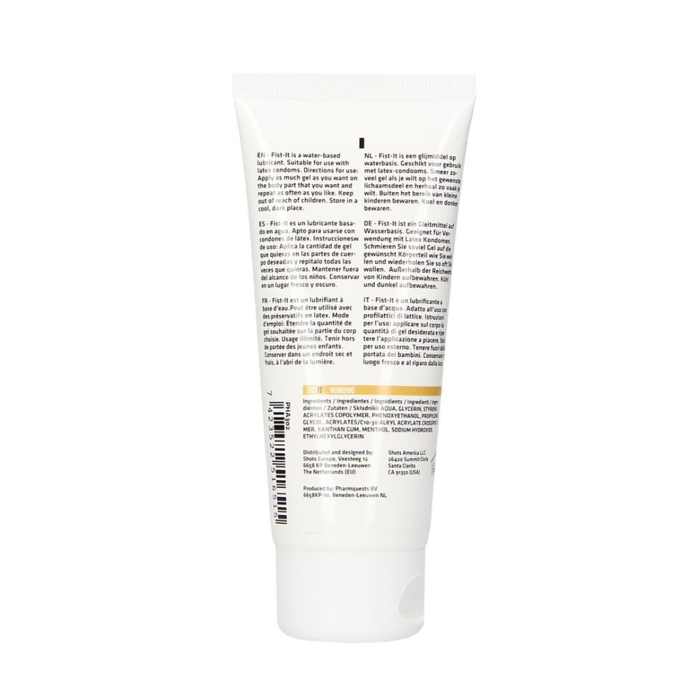 Fist It Professional est un lubrifiant à base d'eau.Peut être utilisé avec des préservatifs en latex. Testé dermatologiquement,sans gras, sans colorants, sans parfums et goût neutre.Mode d'emploi: Étendre la quantité de gel souhaitée sur la partie du corp choisie. Usage illimité.Tenir hors de portée des jeunes enfants. Conserver dans un endroit sec et frais, à l'abri de la lumière.