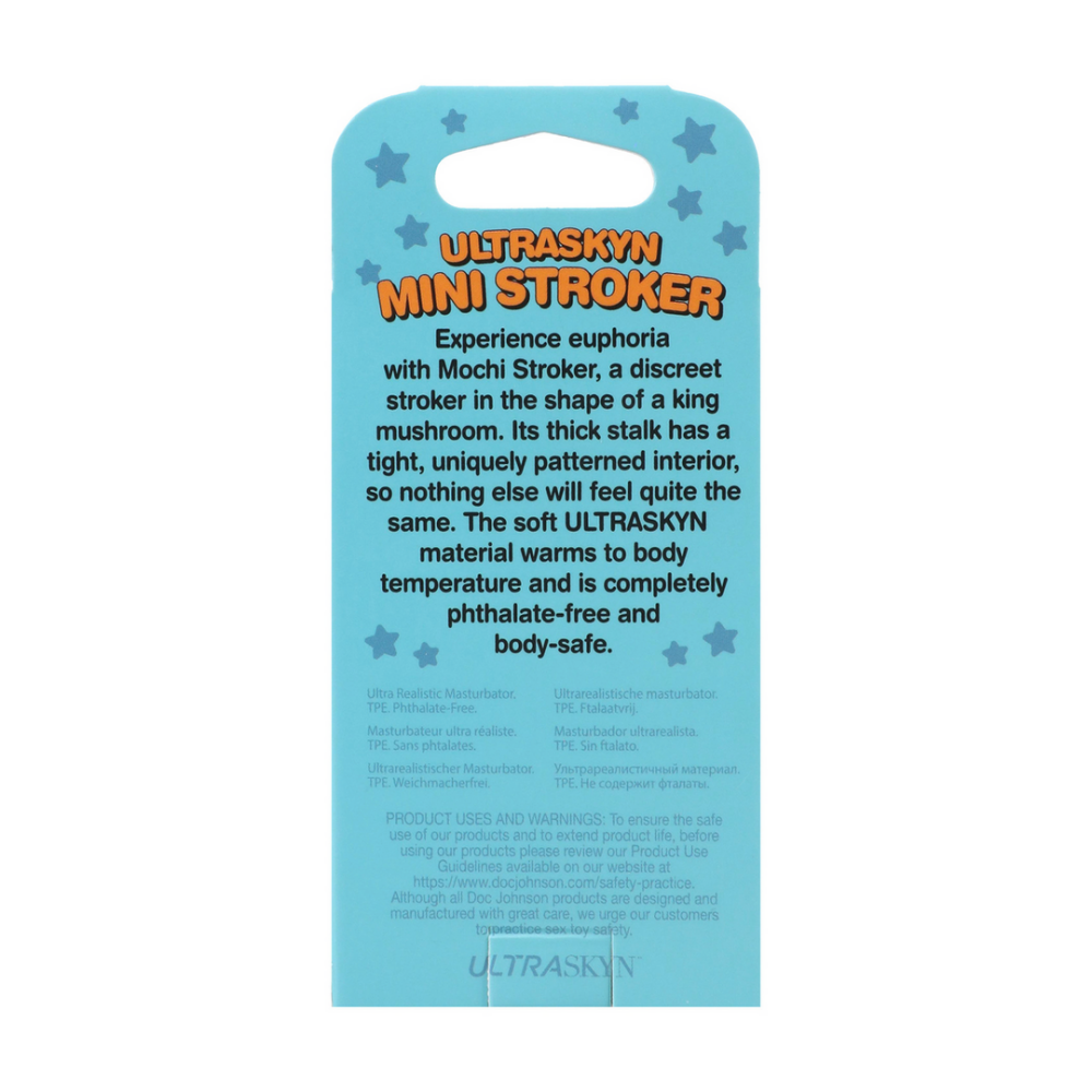 Experience euphoria with Mochi Stroker, a discreet stroker in the shape of a king mushroom. Its thick stalk has a tight, uniquely patterned interior, so nothing else will feel quite the same. The soft ULTRASKYN material warms to body temperature and is completely phthalate-free and body-safe.