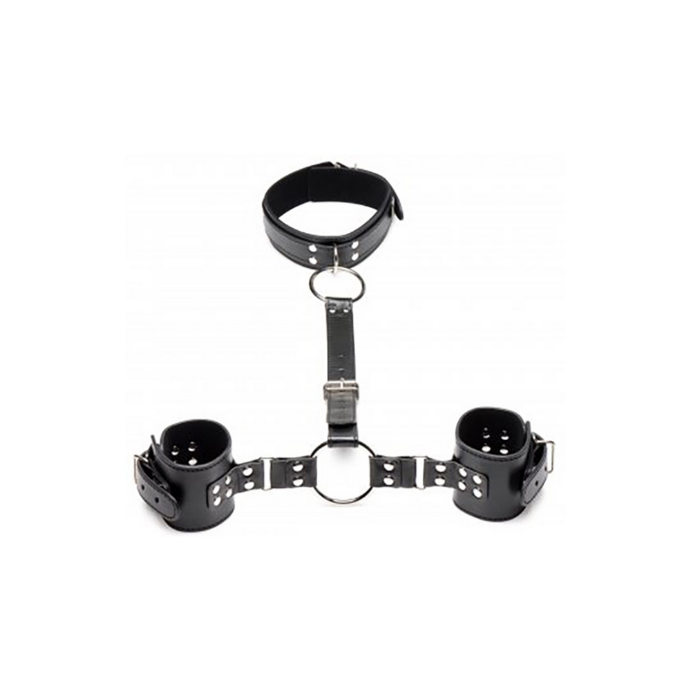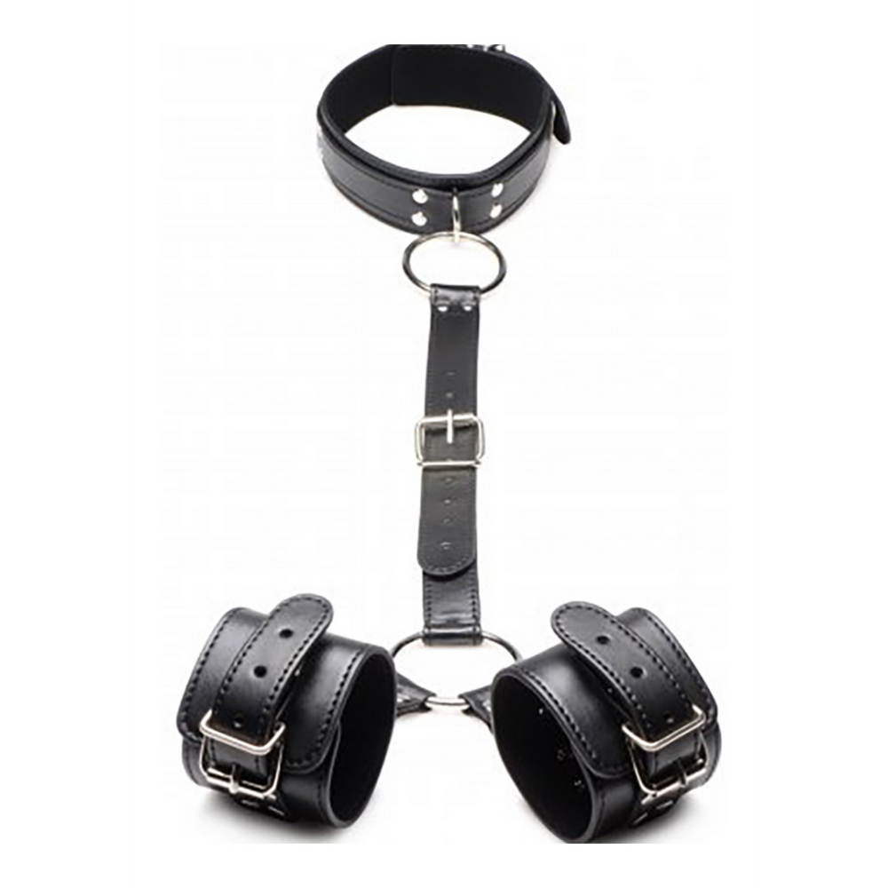Attachez votre soumis avec ces menottes de cou à poignet ! Servant également de collier, la doublure intérieure douce est douce contre leur peau, vous pouvez donc serrer le collier et les menottes aussi fort que cela est confortable. Le cuir PU respectueux des animaux est facile à nettoyer et conserve l'apparence sexy et classique du cuir ! Les grands anneaux en O sont en métal solide et sans nickel et peuvent avoir d'autres objets de bondage attachés. Utilisez la boucle pour ajuster à la taille parfaite. Accrochez vos doigts autour des anneaux en O et tirez votre partenaire vers vous. Amusez-vous à attacher les anneaux en O à différents points d'ancrage ou placez leurs mains loin d'eux. Leurs poignets seront menottés et restreints, la sangle centrale attachée à leur cou collier. Gardez la sangle centrale courte pour que leurs mains soient juste hors de portée de leurs organes génitaux afin qu'ils ne puissent pas se toucher, et profitez de les taquiner et de jouer avec eux. Limitez encore plus leurs mouvements en ramenant la sangle à l'arrière et en plaçant leurs poignets restreints derrière leur dos. Après avoir fini de jouer, utilisez un nettoyant pour jouets et vaporisez les sangles et le métal, puis essuyez avec un chiffon doux. Rangez dans un endroit frais et sombre, à l'écart de tout matériau tranchant ou rugueux. Mesures : Largeur de la sangle du collier : 3,8 cm, le collier s'ajuste de 31,75 cm à 42 cm de circonférence, largeur de la sangle des menottes : 6,4 cm, les menottes s'ajustent de 19 cm à 25,4 cm de circonférence. La sangle arrière s'ajuste de 26,7 cm à 42 cm de longueur. Matériaux : Cuir PU, métal Couleur : Noir, Métal Caractéristiques clés : Cuir PU : Ce cuir respectueux des animaux est facile à nettoyer et conserve le style classique et sexy du cuir ! Grands anneaux en O : Attachez-vous à ce design avec des anneaux en O qui peuvent facilement être attachés à d'autres objets de bondage. Bouclé et ajustable : Le collier et les menottes se ferment et se bouclent pour que vous puissiez trouver l'ajustement parfait pour le confort et la contrainte. Les menottes peuvent être débouclées et réattachées soit à l'avant, soit à l'arrière pour plusieurs positions de contrainte. Doublure intérieure douce : Profitez de la sensation de cela contre votre peau. La doublure intérieure douce rend le port de cet accessoire serré contre votre corps confortable et sexy !