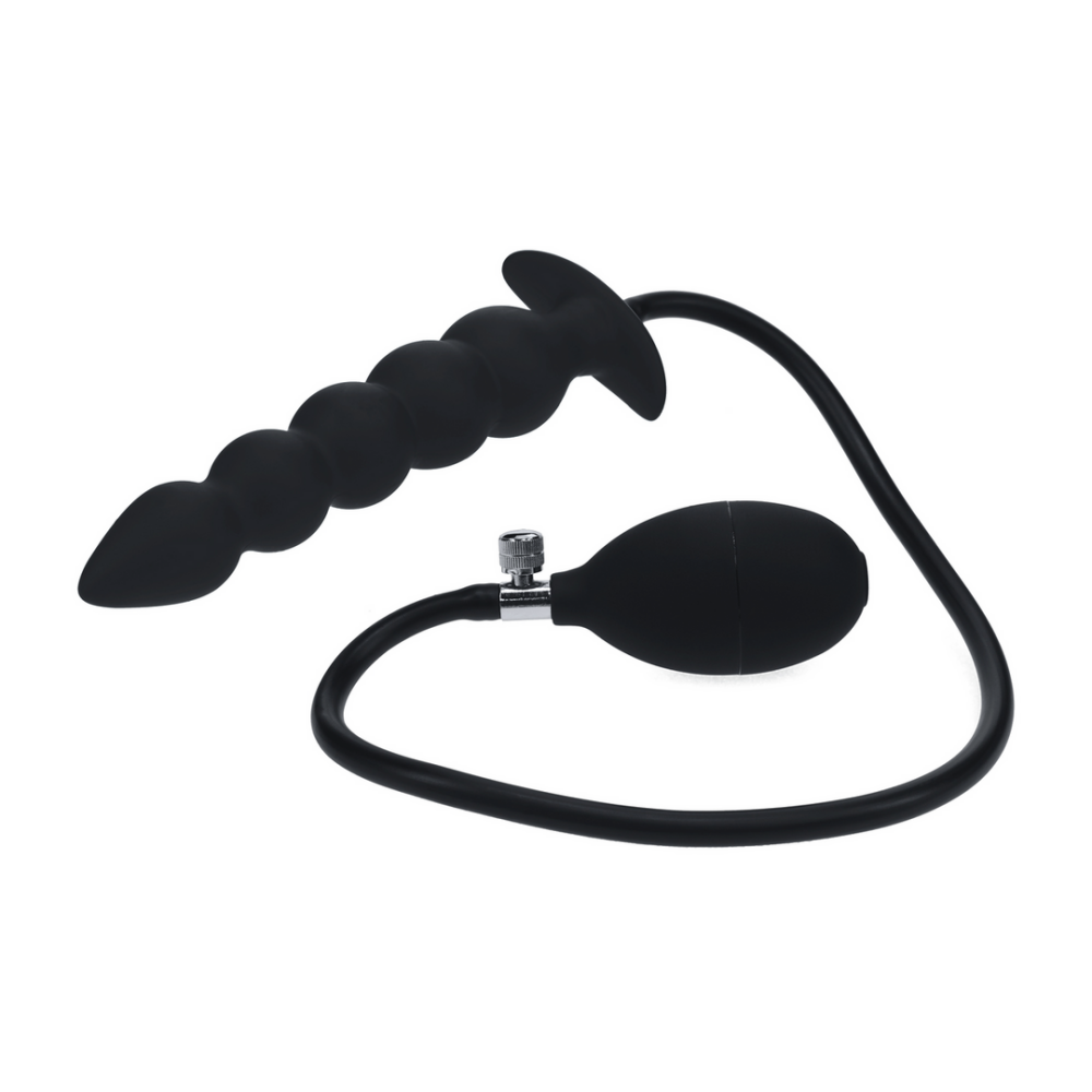 Take your pleasure to the next level with this beaded silicone inflatable plug. The graduated bead design delivers thrilling stimulation with every movement, while the inflatable feature allows for controlled expansion up to a maximum size of 12 cm. Made from smooth, body-safe silicone and finished with a flared base for safe, secure play.