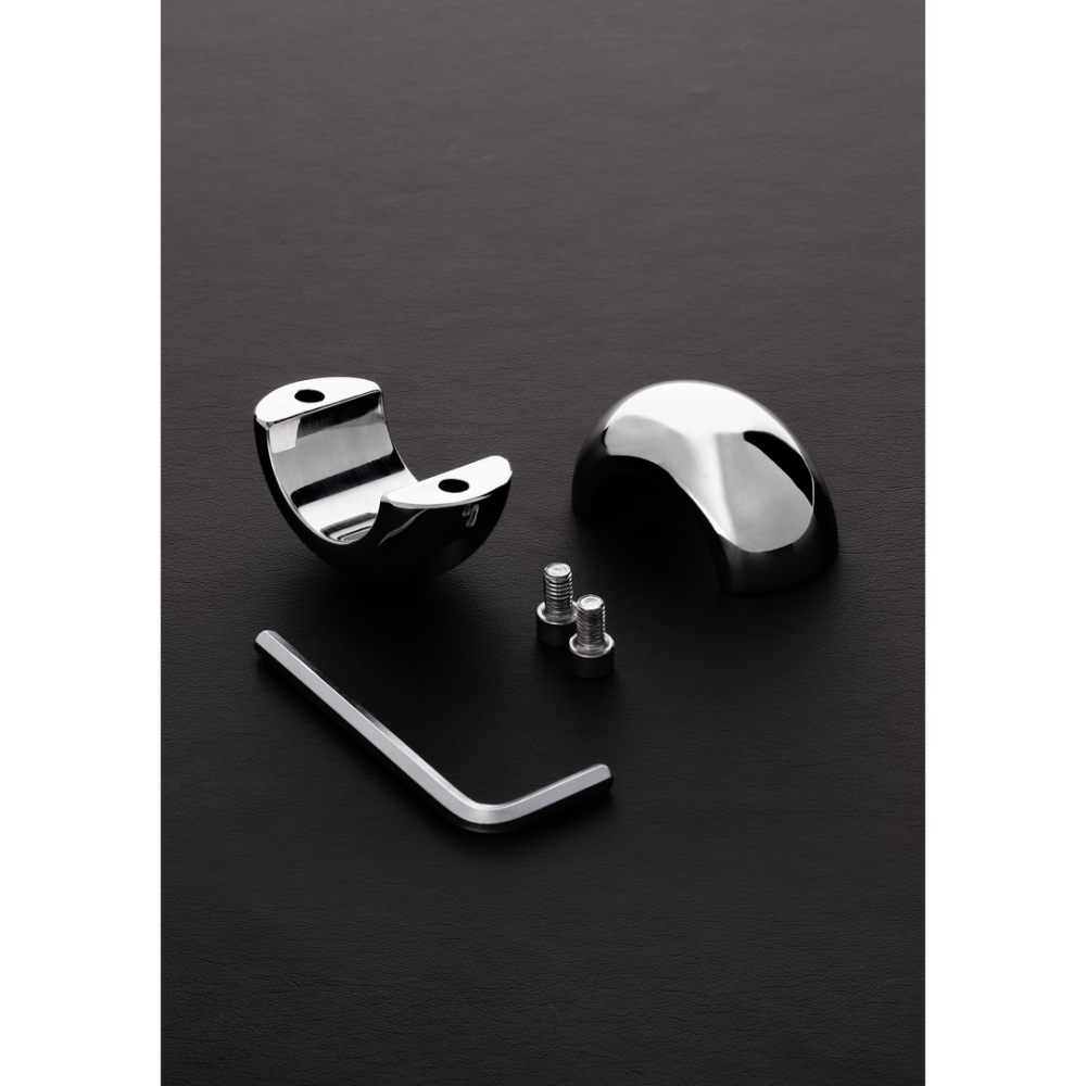 Les bords arrondis en acier inoxydable permettent à ces séparateurs testicules de se faire remarquer tout en restant simples avec leur conception à anneaux fendus. Le séparateur testicules s'ouvre et se ferme au moyen d'un boulon pouvant être vissé ou dévissé à l'aide d'une clé à six pans standard (incluse).