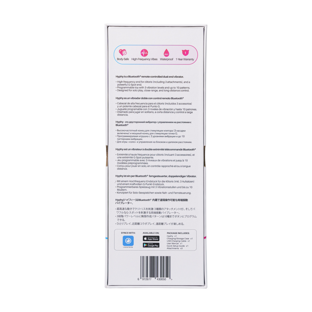 Le Hyphy est un vibrateur avancé avec des vibrations à haute fréquence pour le point G, offrant une sensation unique et excitante. Contrairement aux autres produits Lovense, le Hyphy procure une stimulation puissante à la fois pour le clitoris et le point G, augmentant le plaisir avec des vibrations intenses et rythmées conçues pour créer une expérience plus satisfaisante. Le vibrateur est livré avec trois accessoires polyvalents : un accessoire en forme de cercle pour une stimulation plus large, un accessoire en forme de U parfait pour les jeux clitoridiens et mammaires, et un accessoire en forme de langue qui vibre rapidement pour des sensations variées. Avec jusqu'à 10 modes personnalisables via l'application Lovense Remote, vous pouvez contrôler l'intensité, la vitesse et les modes de vibration pour une expérience personnalisée. L'application vous permet également de vous connecter avec un partenaire et de contrôler l'appareil à distance, que ce soit près ou loin, ajoutant une nouvelle dimension de plaisir interactif.