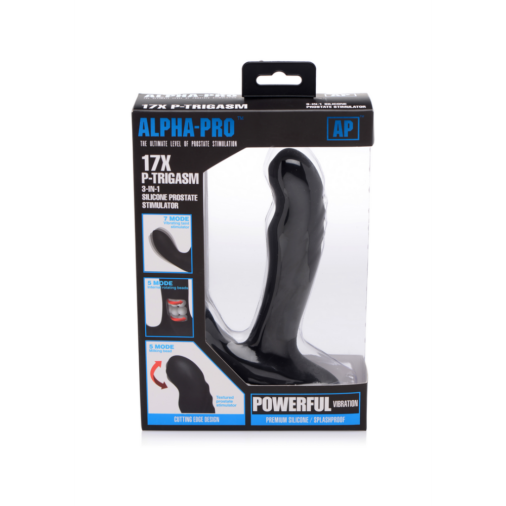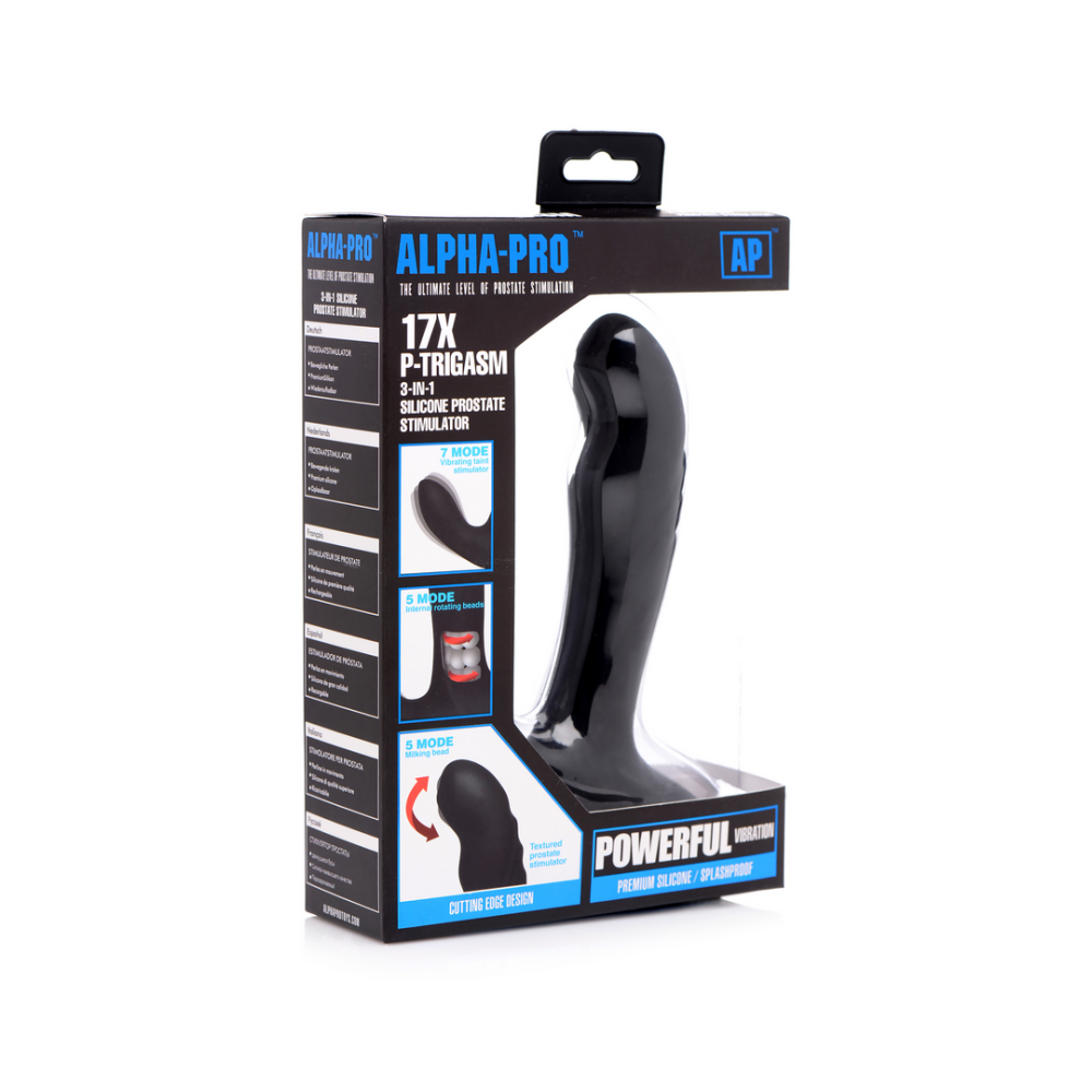 Offrez à vos fesses un trio de tentations alléchantes. Le 17x P-Trigasm est doté d'une tige de périnée à bourdonnement puissant avec 3 vitesses et 4 modes de vibration externe. Il contient également plusieurs rangées de perles rotatives sous la surface de la base de la tige, pour tourbillonner de manière séduisante autour de votre sphincter avec 5 réglages. Enfin, une perle sous la surface de la pointe se déplacera de haut en bas, traitant votre sweet spot avec 5 modes de mouvement supplémentaires. Fabriqué en silicone soyeux, vous pouvez profiter d'une insertion sans couture. Cet outil de plaisir rechargeable haut de gamme est étanche, non poreux et sans phtalates. Évitez l'utilisation avec des lubrifiants à base de silicone. Nettoyez après utilisation avec un savon doux ou un nettoyant pour jouets.