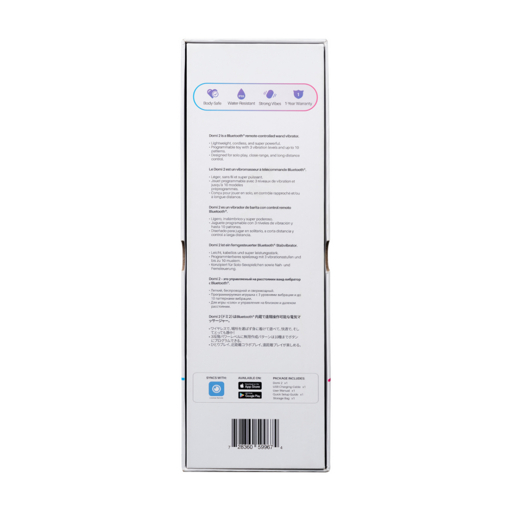Le Domi 2 est un vibromasseur compact offrant une technologie de moteur améliorée et une tête puissante pour des vibrations profondes et sourdes. Son manche redessiné assure une prise en main confortable et est renforcé pour un meilleur contrôle de la pression. Avec une batterie plus grande, il offre presque trois fois plus d'autonomie que les modèles précédents, le rendant parfait pour des jeux prolongés. L'appareil est contrôlé par application, permettant aux utilisateurs d'ajuster les niveaux de vibration via un smartphone pour des jeux solos ou à distance. Il propose également des extras amusants comme la synchronisation musicale, le contrôle par le son et les réglages d'alarme, enrichissant votre expérience. La connexion Bluetooth stable assure un plaisir sans interruption, même pour le cam.