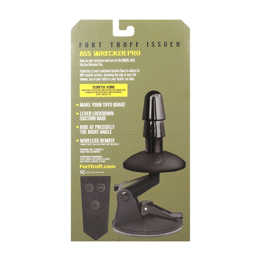 Amp up your sessions and turn on the QUAKE with the Ass Wrecker Pro. Featuring a Lever Lockdown Suction Base to adhere to ANY smooth surface, including the side of your tile shower, to of your toilet or your fuckin' car door.
