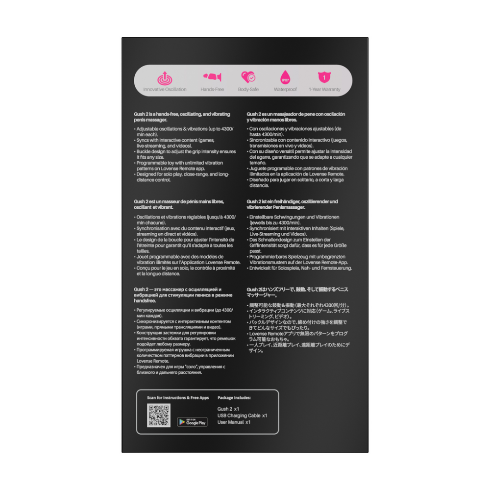 Gush 2 est un masturbateur masculin conçu pour améliorer les performances, doté de moteurs puissants et d'un tunnel texturé. Sa fonction d'oscillation se concentre sur le frein du pénis, offrant une stimulation intense. Avec une taille ajustable grâce à des boucles flexibles, il s'adapte à tous les utilisateurs. Contrôlé via l'application Lovense Remote, Gush 2 permet aux partenaires à distance de régler l'intensité, renforçant ainsi l'intimité. Étanche avec une certification IPX7, il peut être utilisé dans le bain ou la douche et est facile à nettoyer. Le design ouvert, fabriqué en silicone hypoallergénique, offre une expérience confortable et intense. Il est livré dans un emballage discret pour protéger votre vie privée.